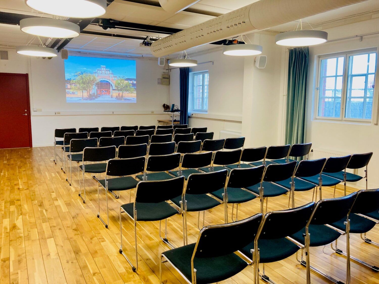 En trevlig och ljus konferenslokal på 71 kvm. Lämplig för det lilla mötet eller som grupprum till större event. Lokalen är utrustad med projektor och högtalare, samt WiFi.